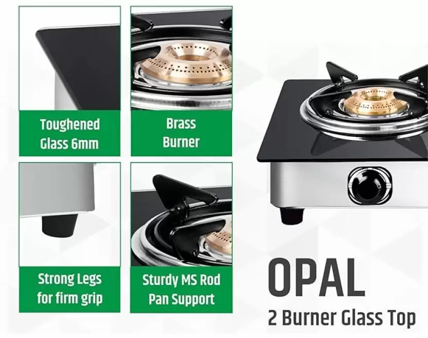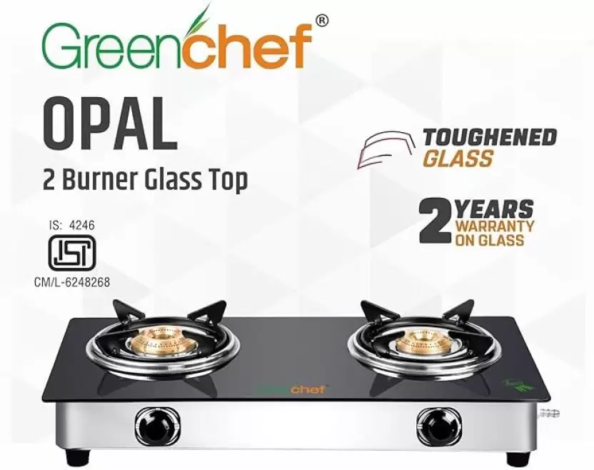 Elevate your kitchen experience with the Greenchef OPAL Glass, Stainless Steel Manual Gas Stove featuring 2 burners. Crafted with a sleek glass top and durable stainless steel body, this stove not only provides a modern aesthetic but also ensures longevity and easy maintenance. The powerful burners offer efficient cooking for all your favorite meals, while the manual controls give you precision and control over your cooking. Perfect for compact kitchens or as a stylish addition to larger setups, the Greenchef OPAL combines functionality and elegance for your culinary needs.