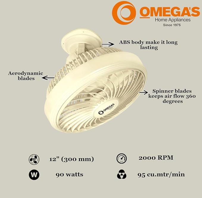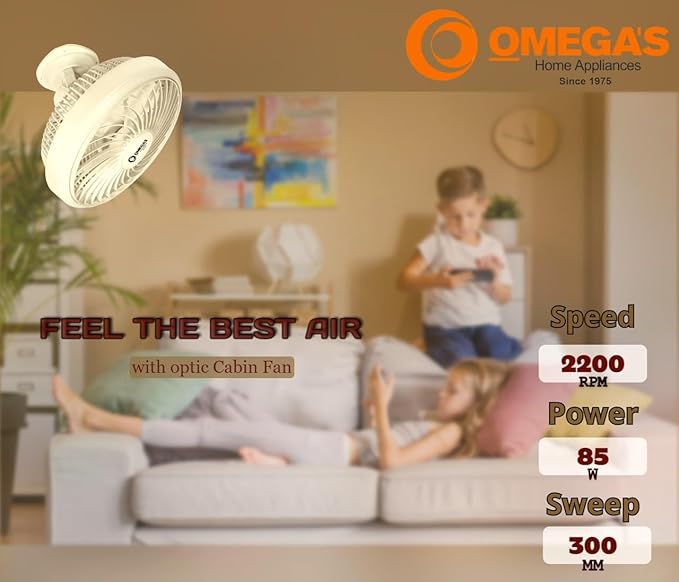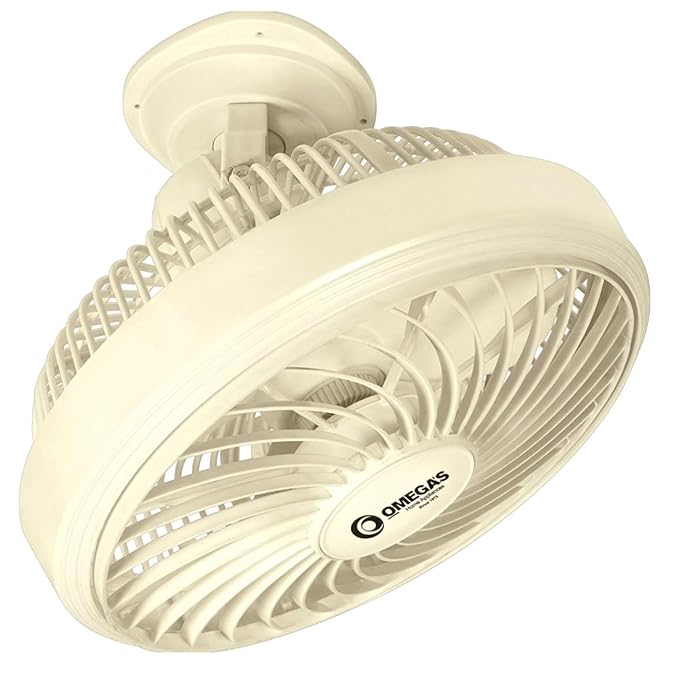 HomeAir Coolers & FansOmega’s Cabin Fan 12 inch | Rotating Front Grill | High Speed | for Small Cabin | Offices | Kitchen | 300 mm, (White)