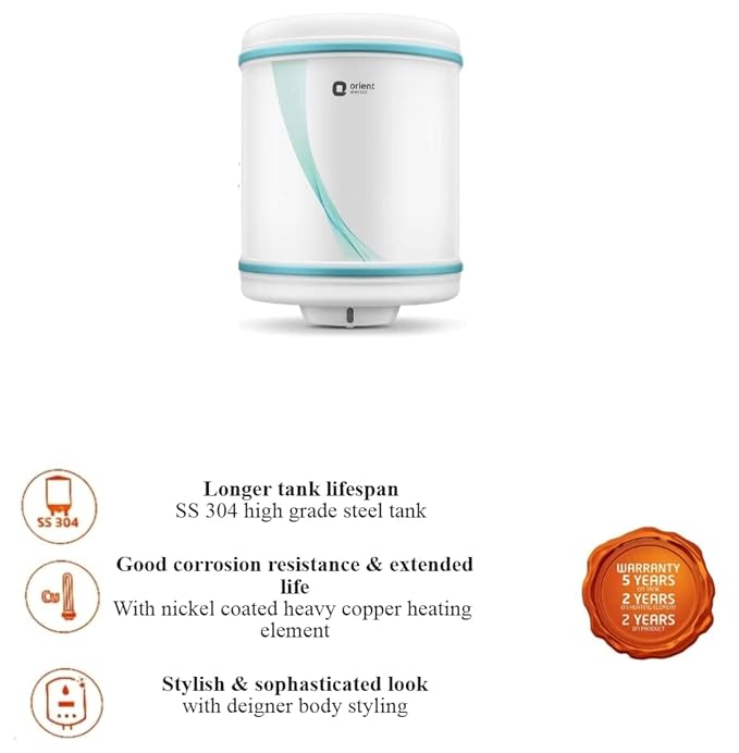 The Orient Electric Ecoswift Water Heater is designed for ultimate performance and durability. With a robust metal body and a generous 10-liter capacity, this electric storage water heater ensures you have ample hot water for your daily needs, whether it’s for a relaxing bath or a quick shower. Featuring advanced heating technology, it provides quick heating and maintains optimal temperature for long-lasting comfort. The sleek design complements any bathroom decor, while safety features like a multi-layered safety system give you peace of mind. Enjoy the perfect balance of efficiency and style with the Orient Electric Ecoswift!